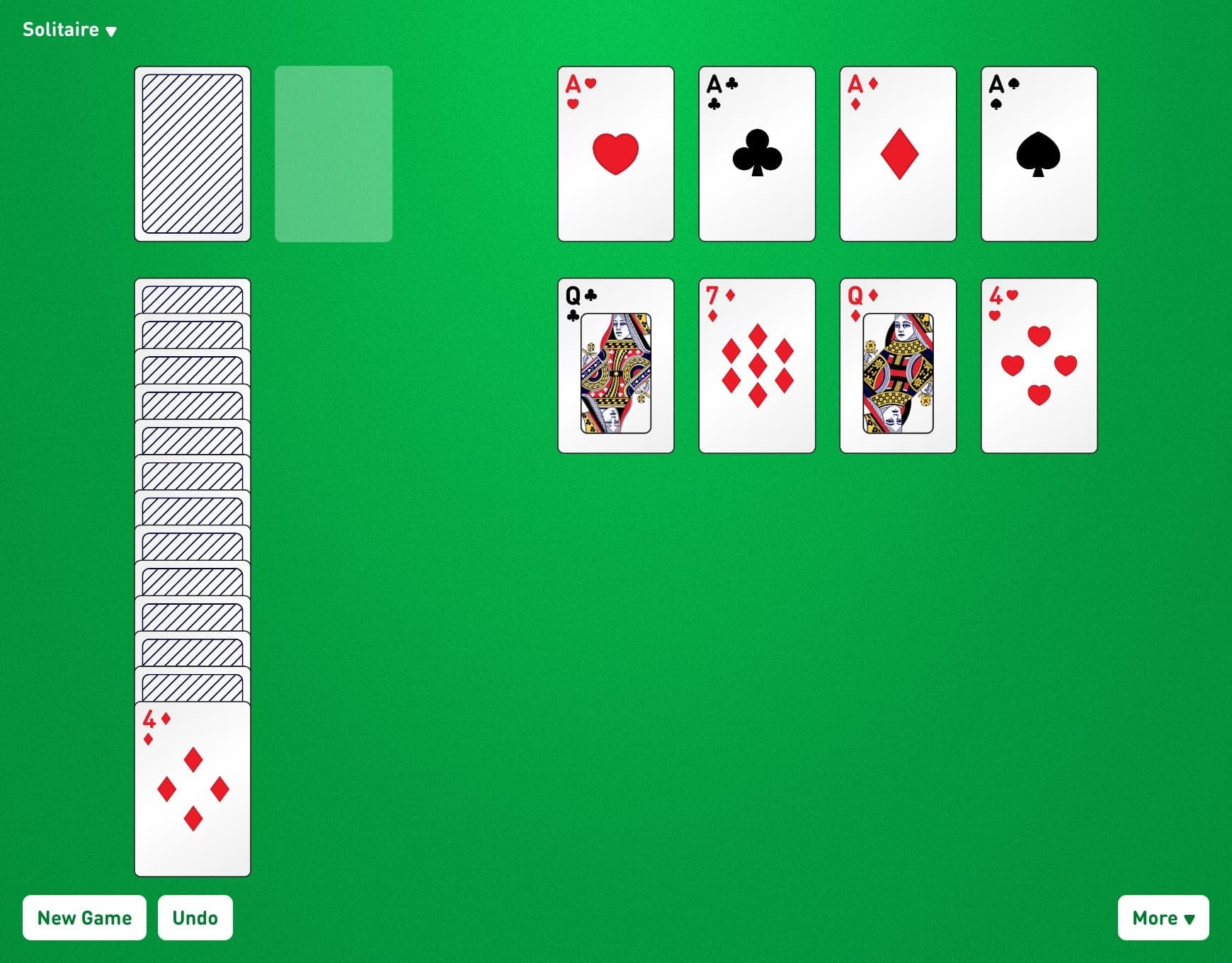 4 foundation piles: Build up from Aces to Kings in the same suit. The Aces are dealt at the start of the game.