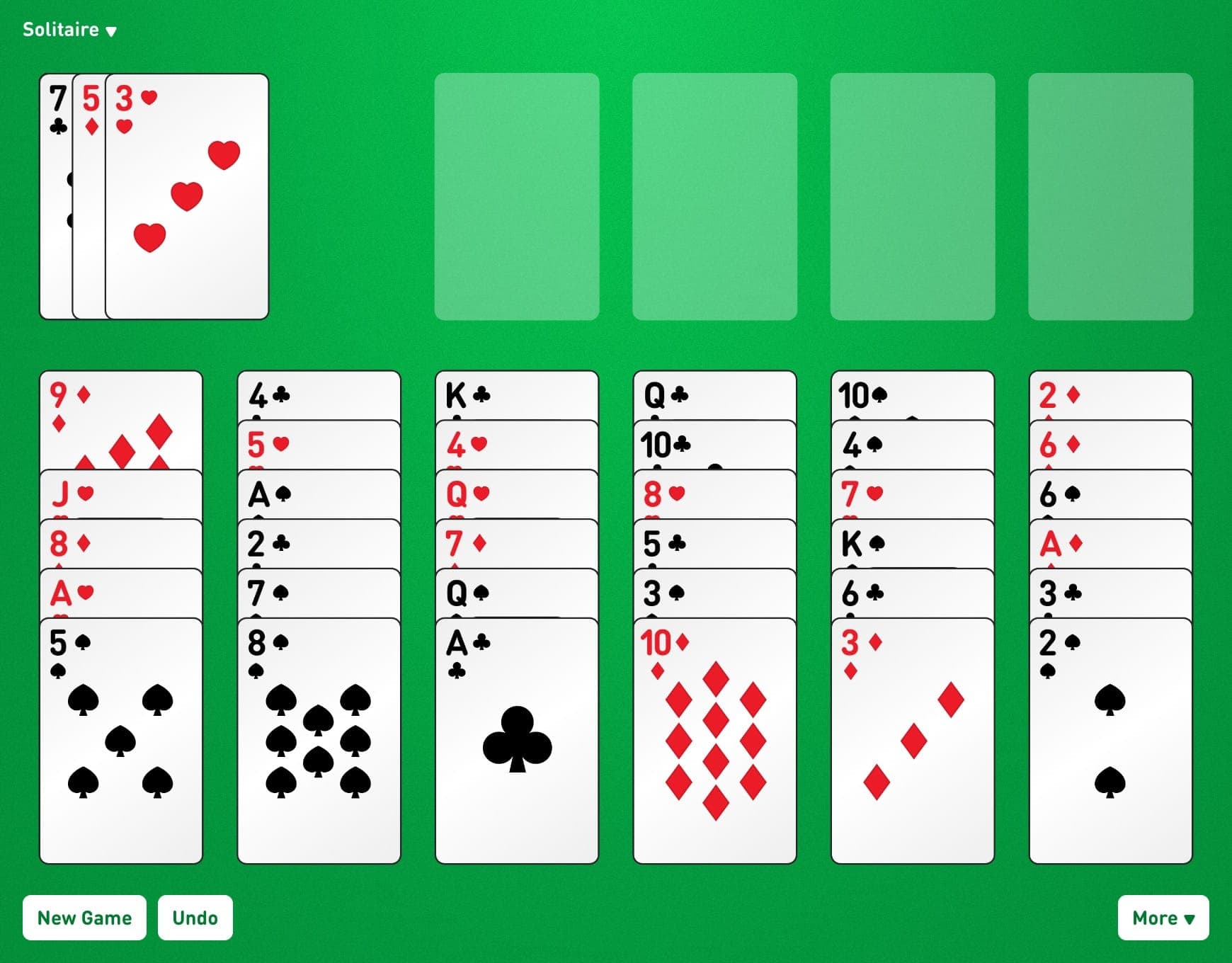 4 foundation piles: Construct the piles in suit order from Ace to King.