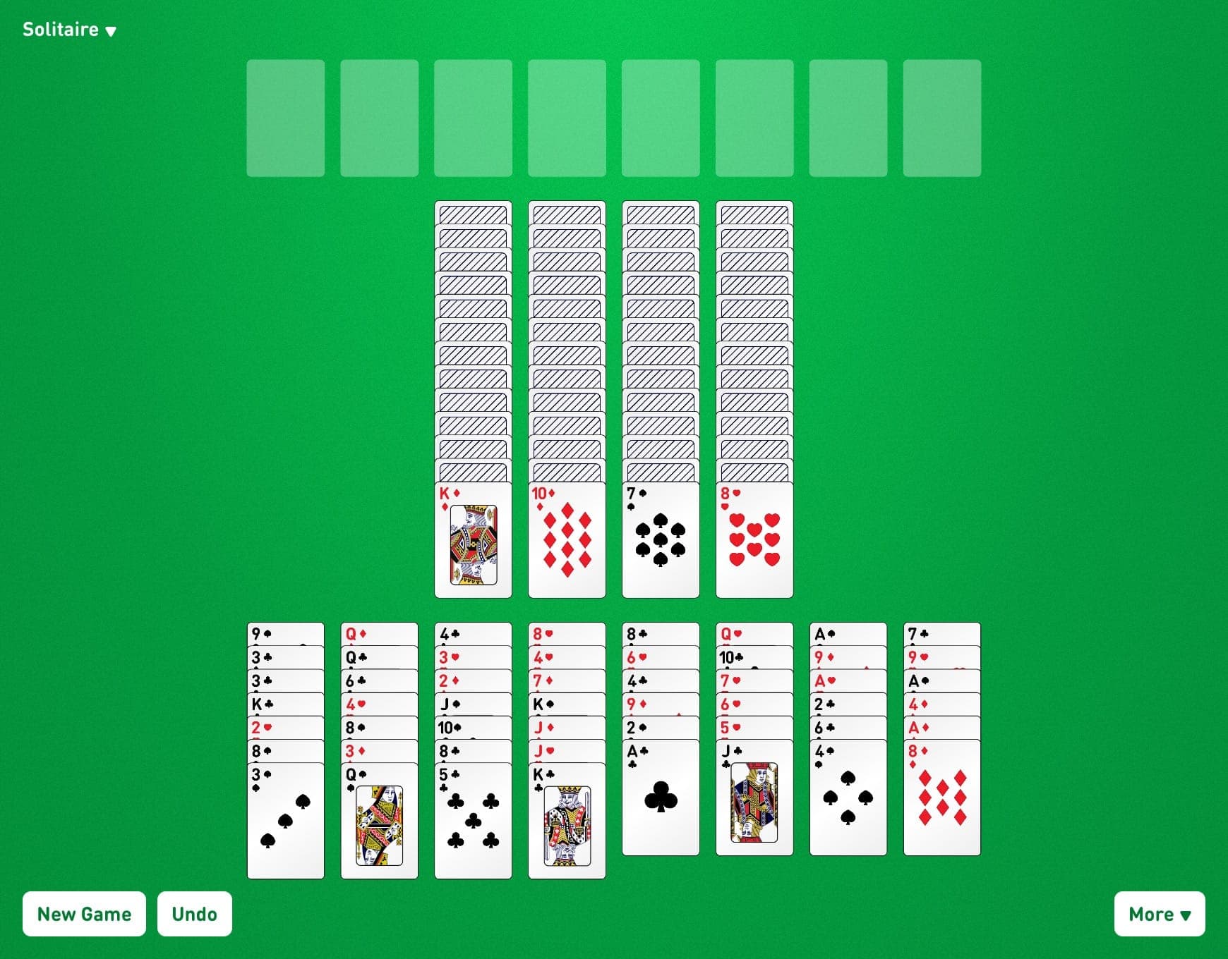 8 foundation piles: Build up from Ace to King regardless of suit.