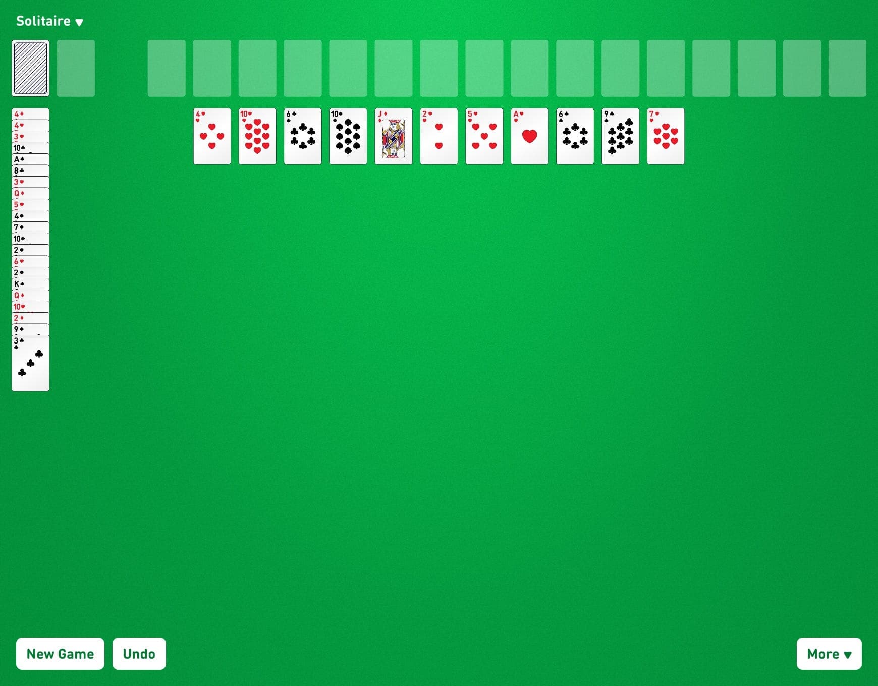 A card may be added to a foundation pile if it is one higher than the pile's previous top card and is of the opposing color. As a result, the only card that might be played on a 3 of spades is a 4 of hearts. There can be no more than 13 cards in a pile.