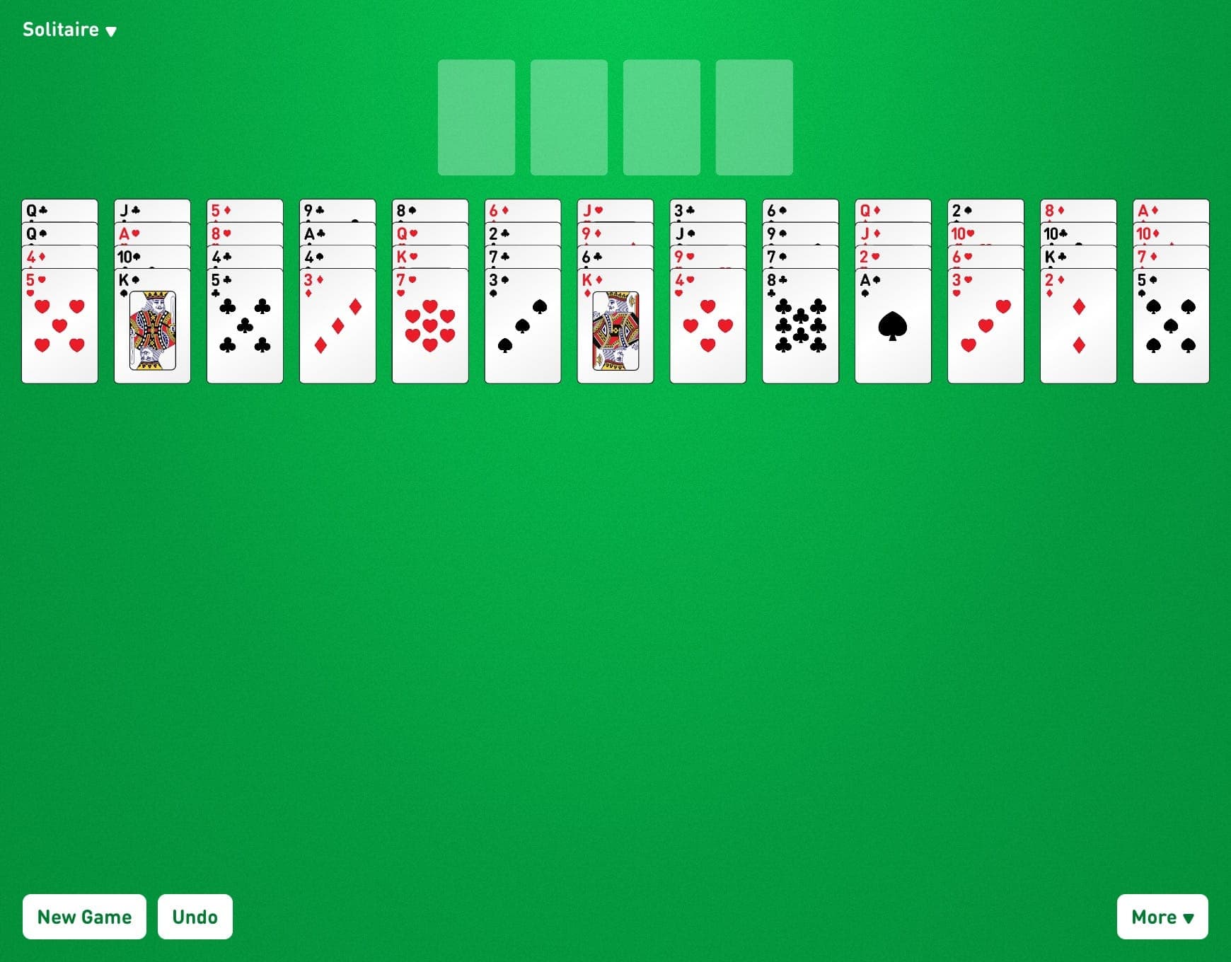 To make this a more thoughtful game than the AisleRiot version, we deal all of the cards face-up.