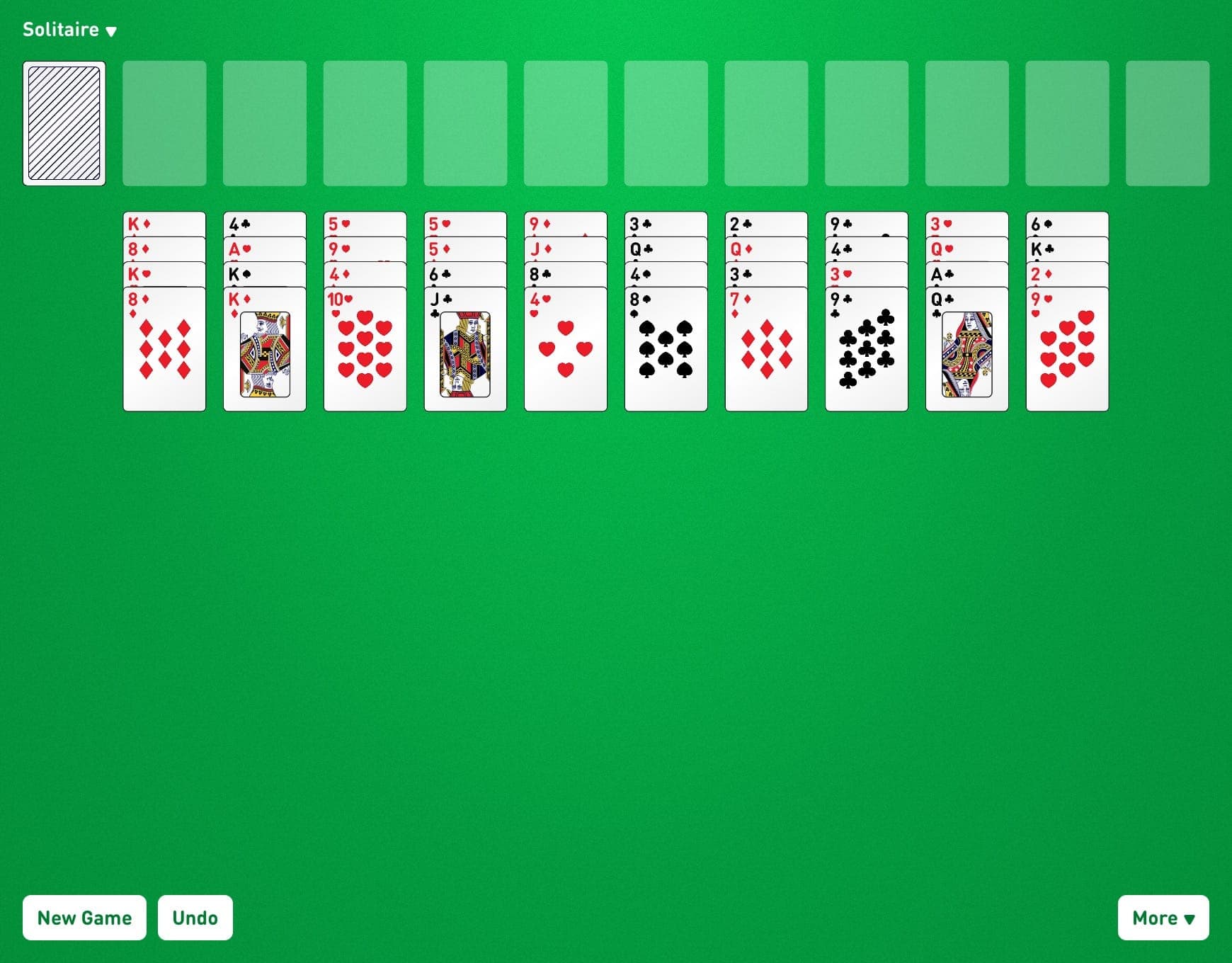 10 tableau piles: Built down in suit. Only one card can be moved at a time. Any card can be used to fill a space. At the start of the game, each pile is given four cards.