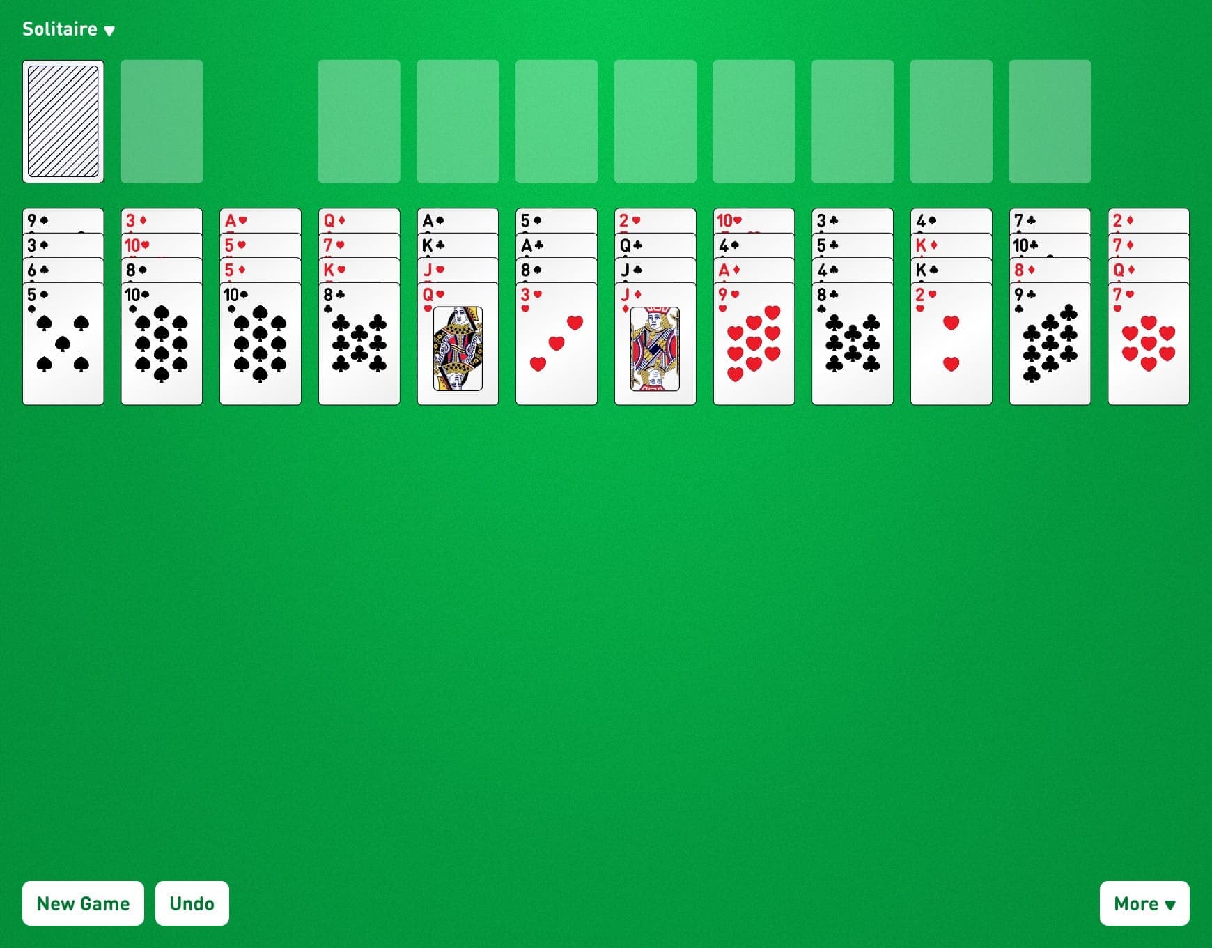 Splayed downward tableau piles of four cards each. Every card is dealt face-up.